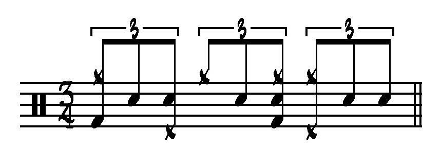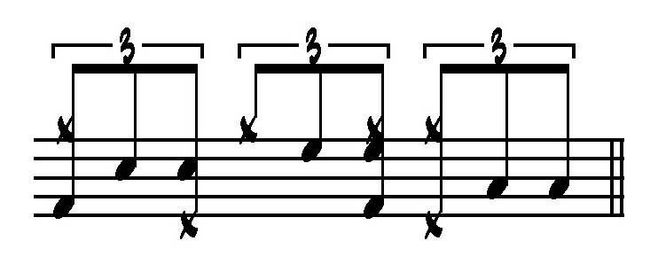 One more thing: You could do these with one note only per drum, but I will generally put doubles or multiples on one drum, and do the moves when there’s enough time to make them easily. So, this pattern from the first installment of the Elvin thing: